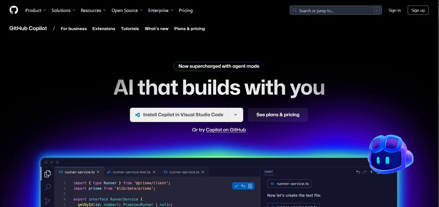 An AI assistant that suggests code, generates tests, and helps write documentation, deeply integrating with your codebase.